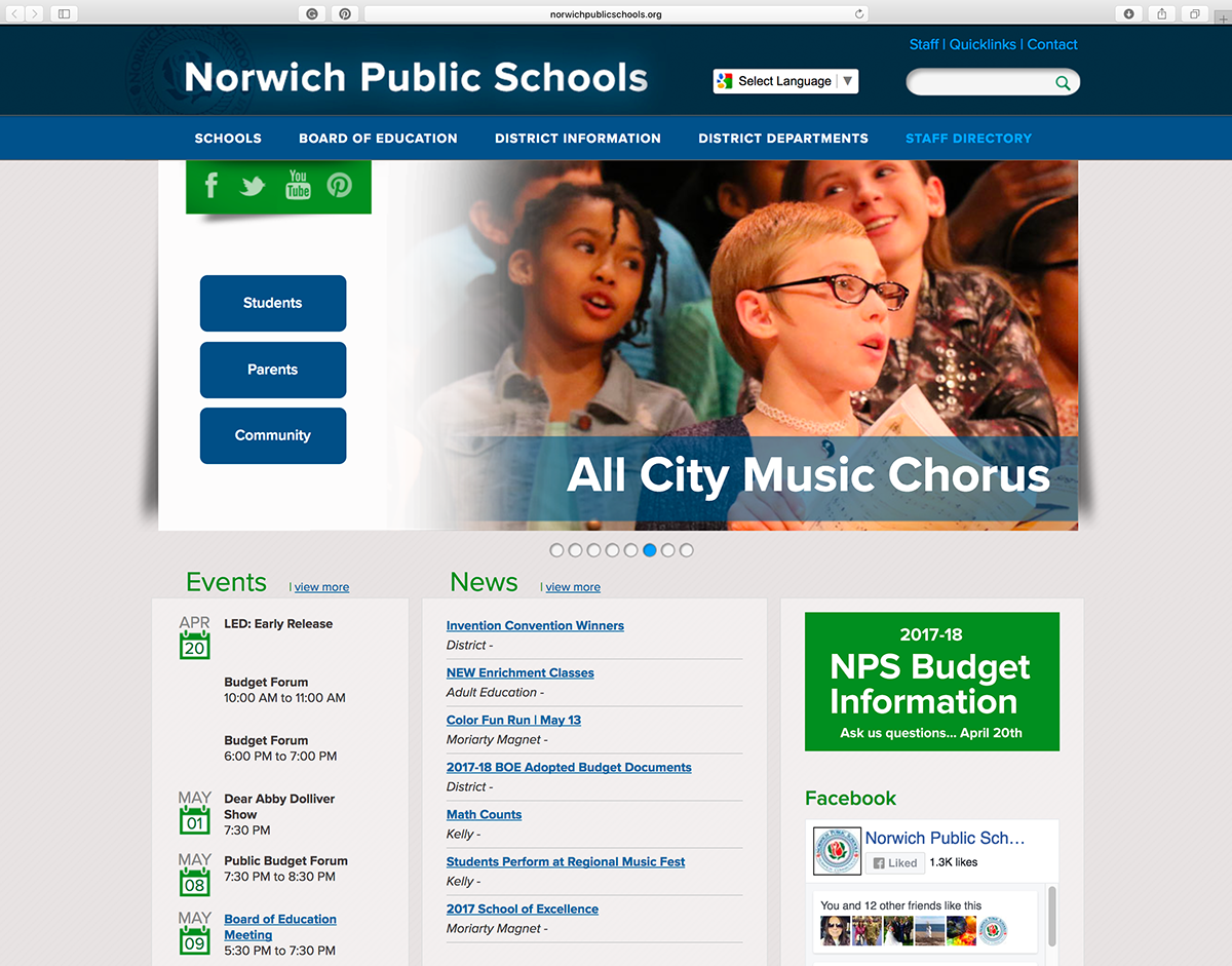 I led the strategic redesign of the Norwich Public Schools website twice, serving as the client-side owner of the digital experience. I authored the RFP, defined experience and accessibility requirements, and partnered with Finalsite to select one of their existing CMS templates as the foundation.